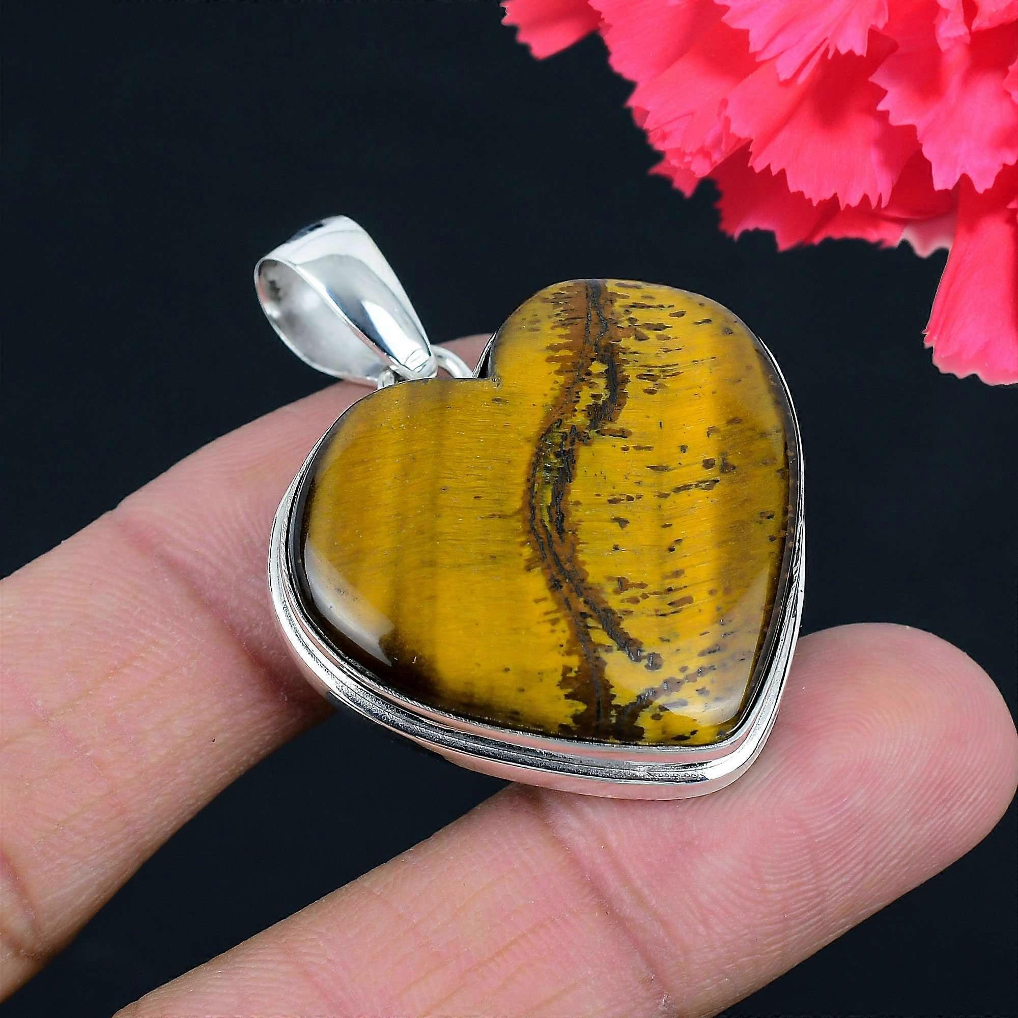 Tiger Eye Gemstone Pendant Solid 925 Sterling Silver Pendant Jewelry Gift For Unisex