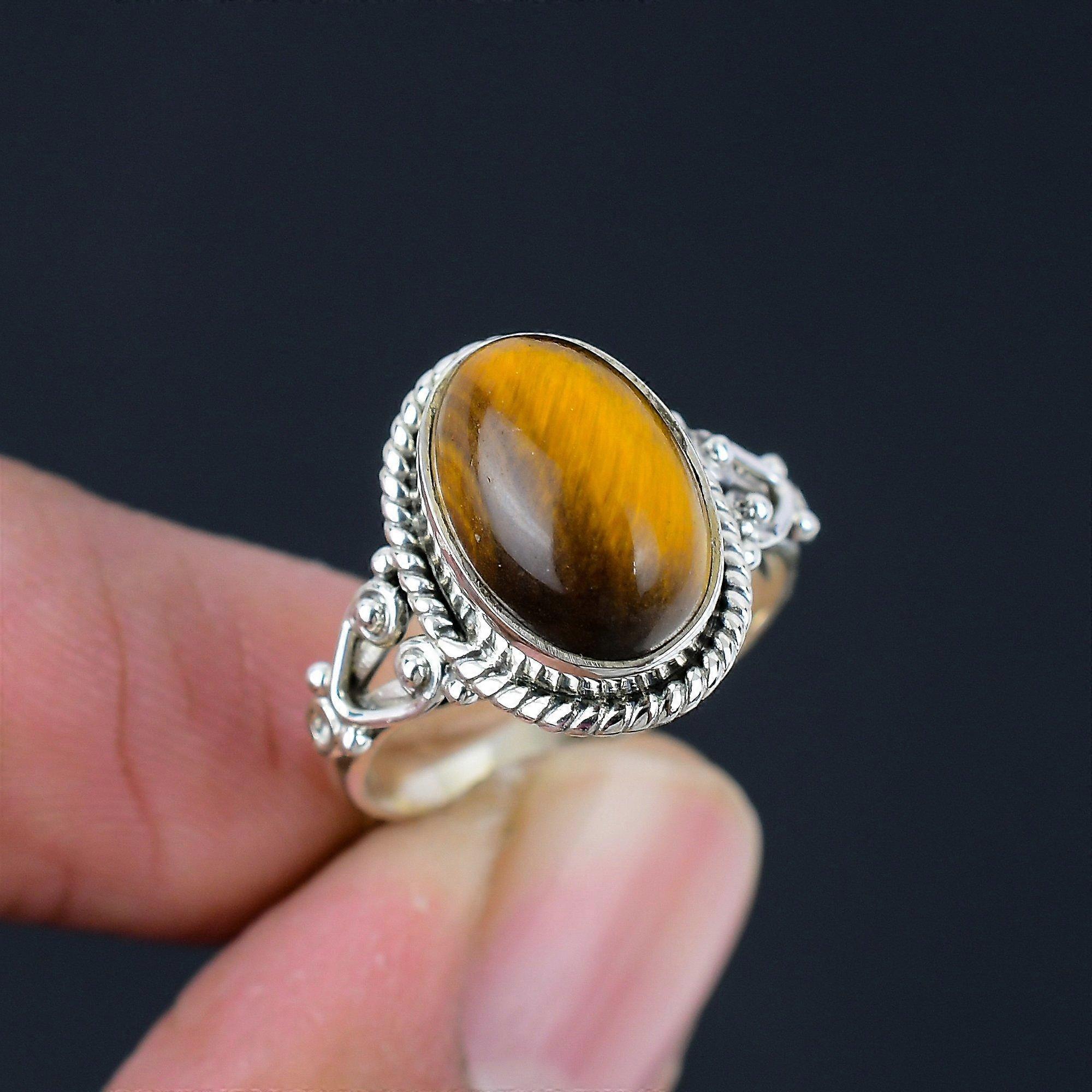 Natural Tiger's Eye Gemstone 925 Sterling Silver Oval Shape Statement Ring For Women & Girls