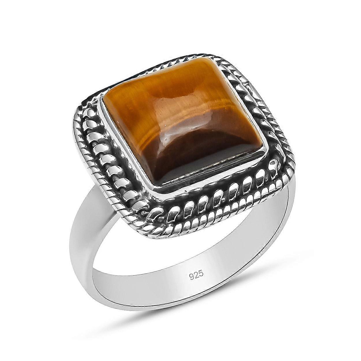 10X10 MM Cushion Shape Tiger Eye 925 Sterling Silver Handmade Ring For Women & Girls Size 5 To 12