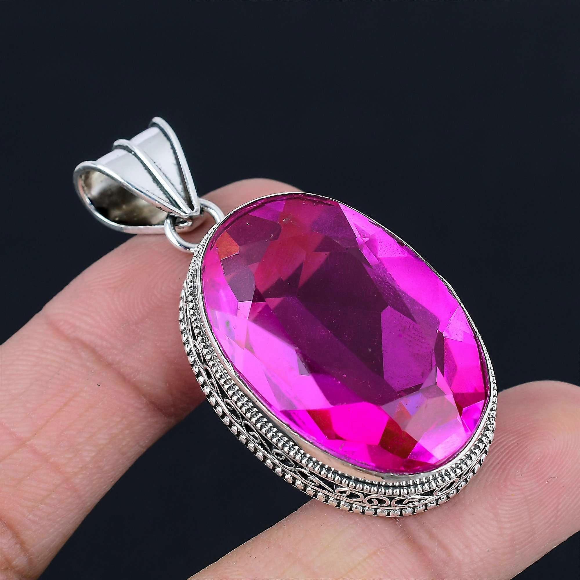 Pink Topaz Gemstone Pendant Solid 925 Sterling Silver Pendant Jewelry Gift For Unisex