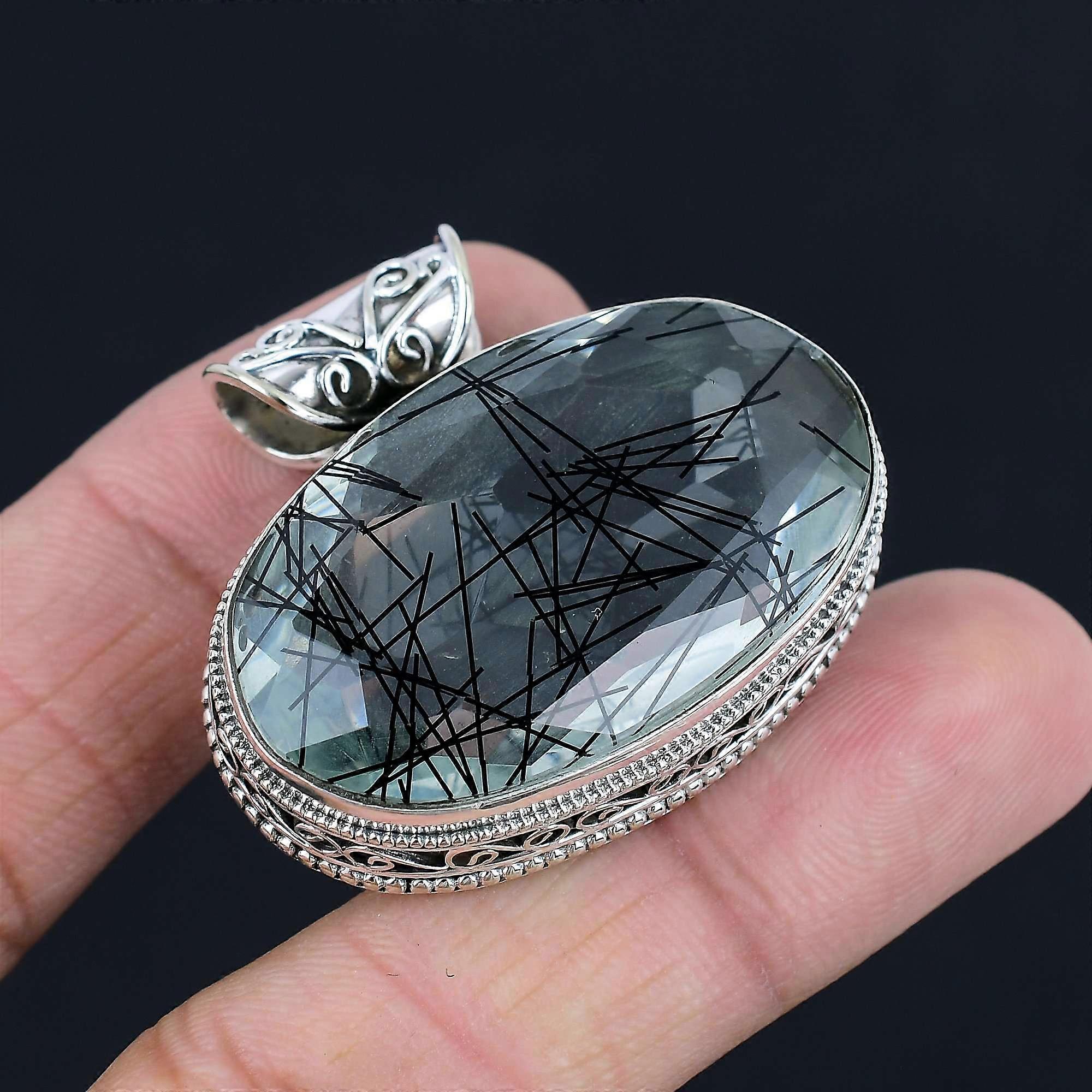 Black Rutile Gemstone Pendant Solid 925 Sterling Silver Pendant Jewelry Gift For Unisex