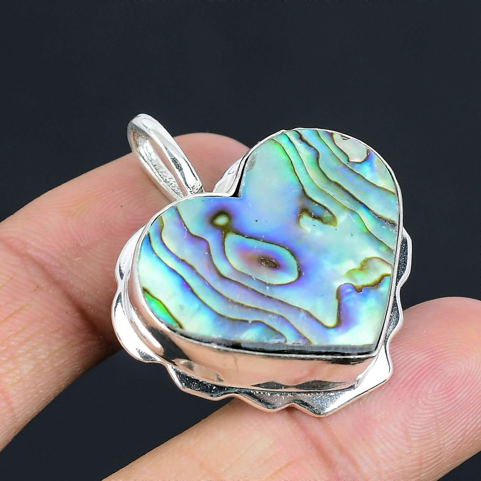 Abalone Shell Gemstone Pendant Solid 925 Sterling Silver Pendant Jewelry Gift For Unisex