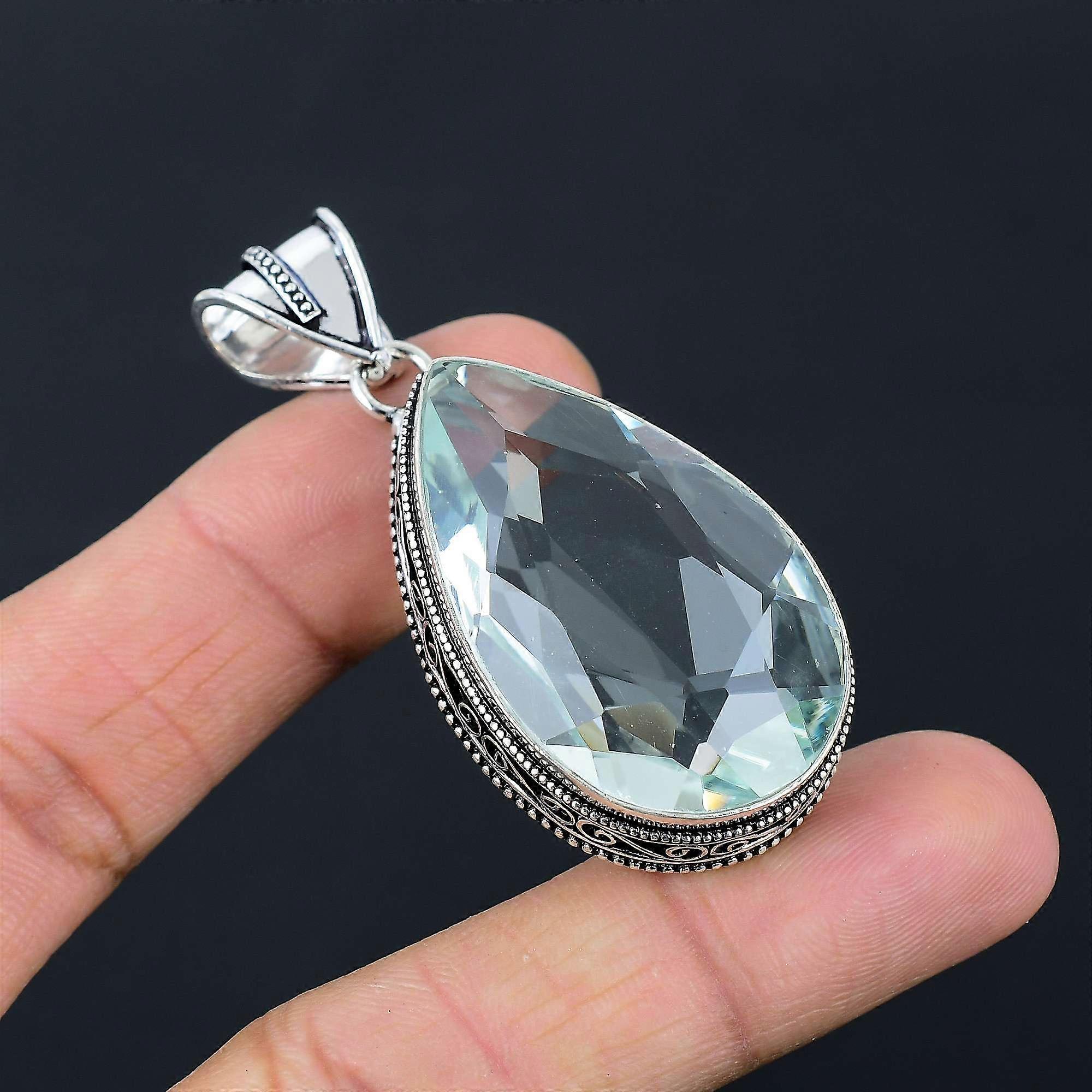 White Topaz Gemstone Pendant Solid 925 Sterling Silver Pendant Jewelry Gift For Unisex LG-008