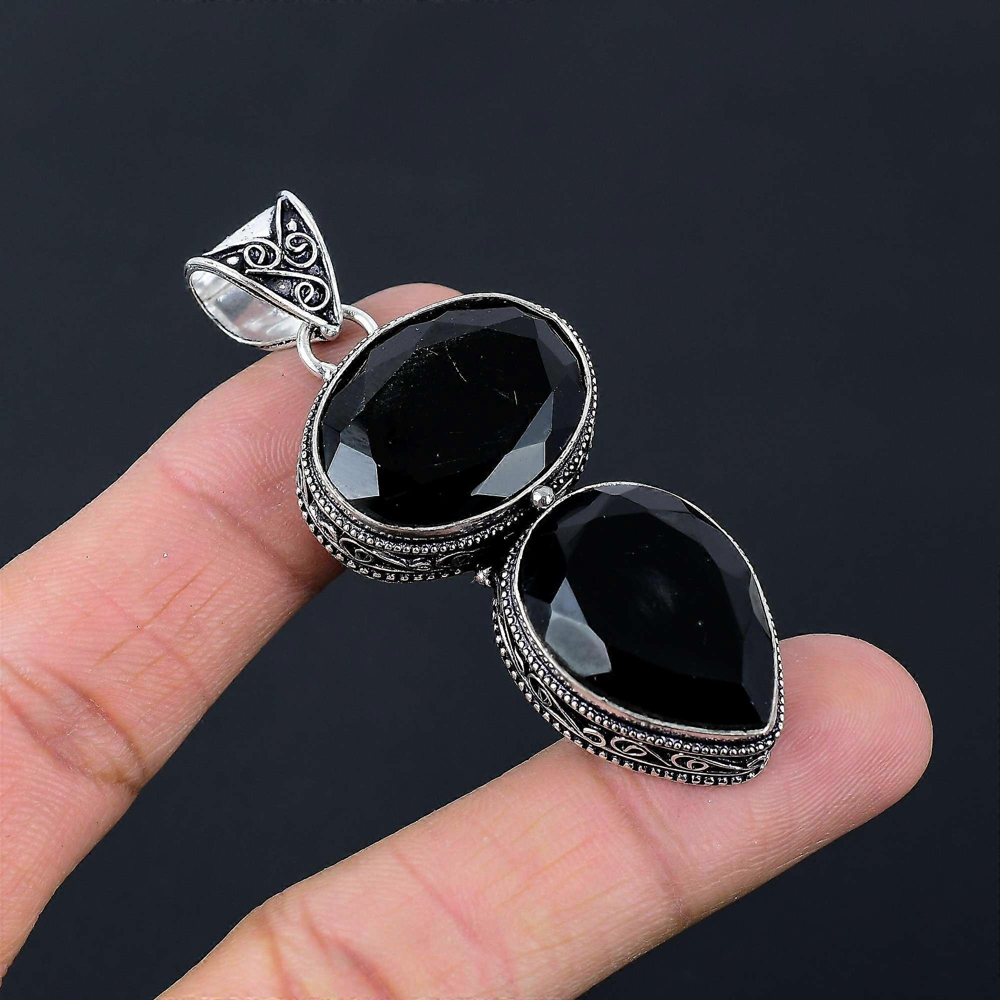 Black Onyx Gemstone Pendant Solid 925 Sterling Silver Pendant Jewelry Gift For Unisex LG-046