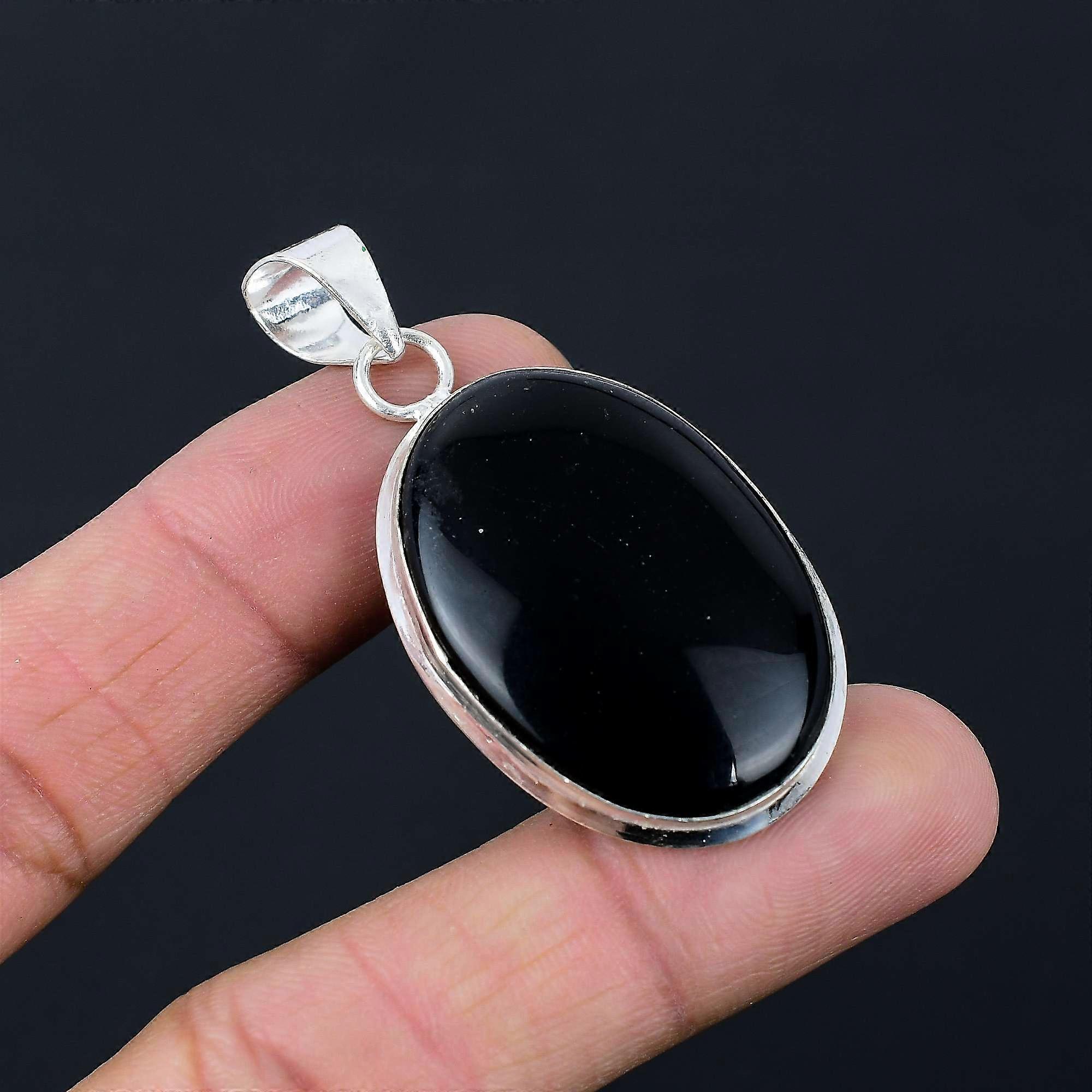 Black Onyx Gemstone Pendant Solid 925 Sterling Silver Pendant Jewelry Gift For Unisex LG-056