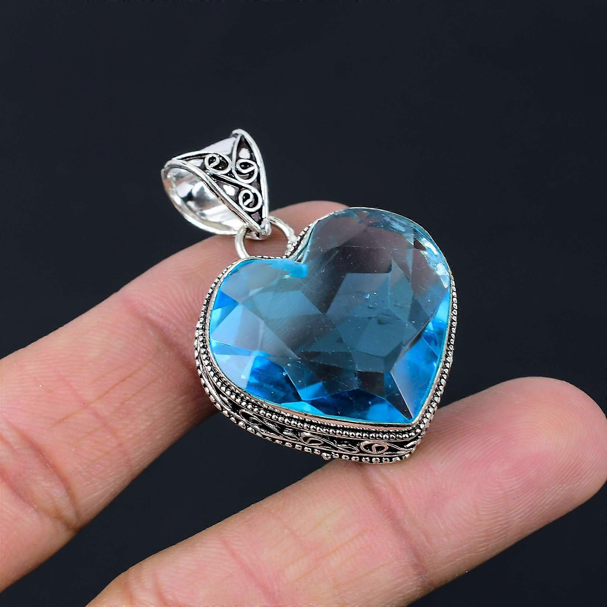 Blue Topaz Gemstone Pendant Solid 925 Sterling Silver Pendant Jewelry Gift For Unisex LG-057