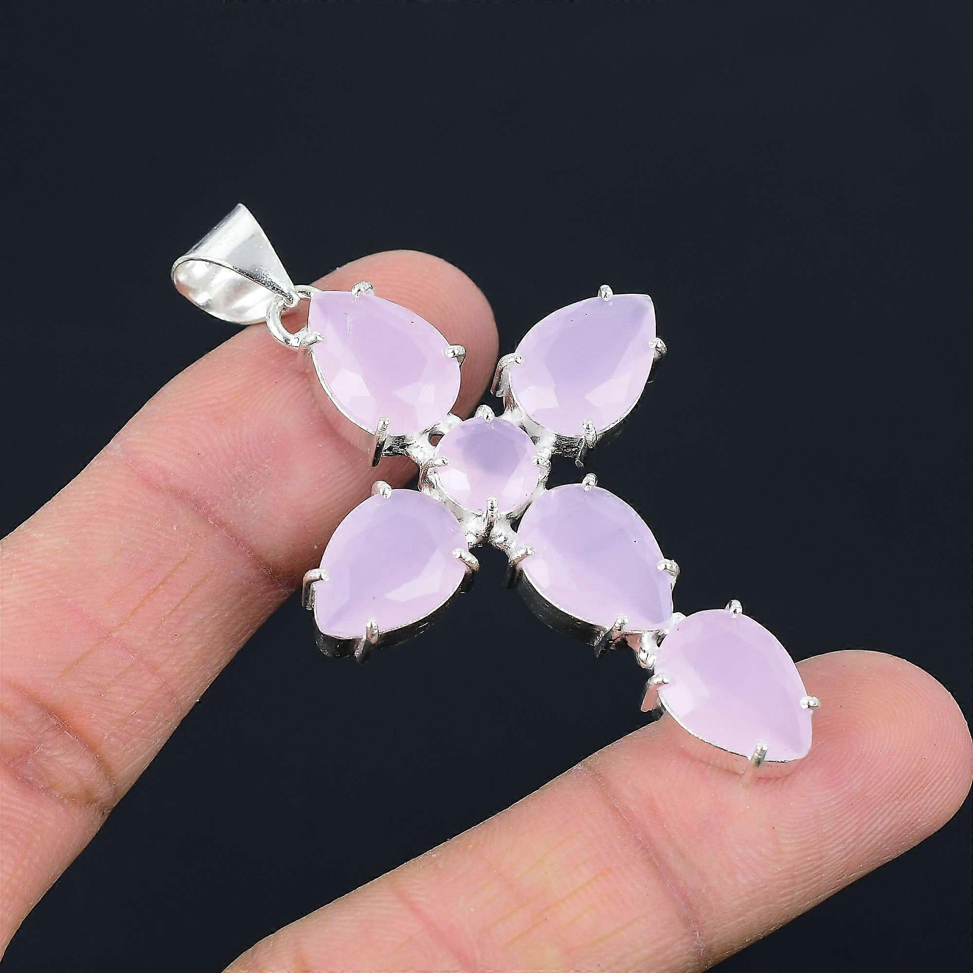 Rose Chalcedony Gemstone Pendant Solid 925 Sterling Silver Pendant Jewelry Gift For Unisex LG-086
