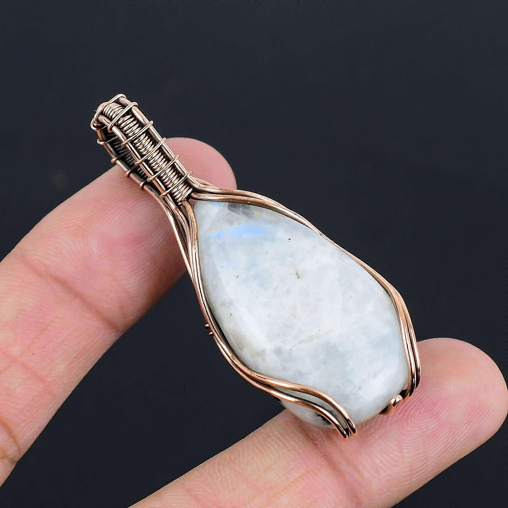 Natural Rainbow Moonstone Gemstone Copper Pendant| Oxidized Wire Wrapped| Necklace Pendant| Handmade Copper Pendant Jewelry For Gift Gemstone - Rainbow Moonstone Stone Creation- Natural Metal - Copper Handmade Pendant Welcome to our little shop, where you can find handmade copper wire jewelry and more, for you and your loved ones. We do accept custom orders also, kindly message us for more. Note :- Due to the natural formation of this gemstone. Slight variation in texture and color but stone shape is same. Benefits of Wearing Rainbow Moonstone Gemstone:- Rainbow Moonstone's energies activate and align all our chakras to allow energy to flow freely. It's a very soothing stone with outputting vibrations full of calming and relaxing energy. This powerful crystal connects with one's emotional body and current mental state. Benefits of Wearing Copper Jewelry:- It's Known to help reduce inflammation, arthritis, headaches, and improve digestions. It helps bring the body back into alignment. Amplifies energy, it is an excellent conductor and helps stimulate the flow energy.