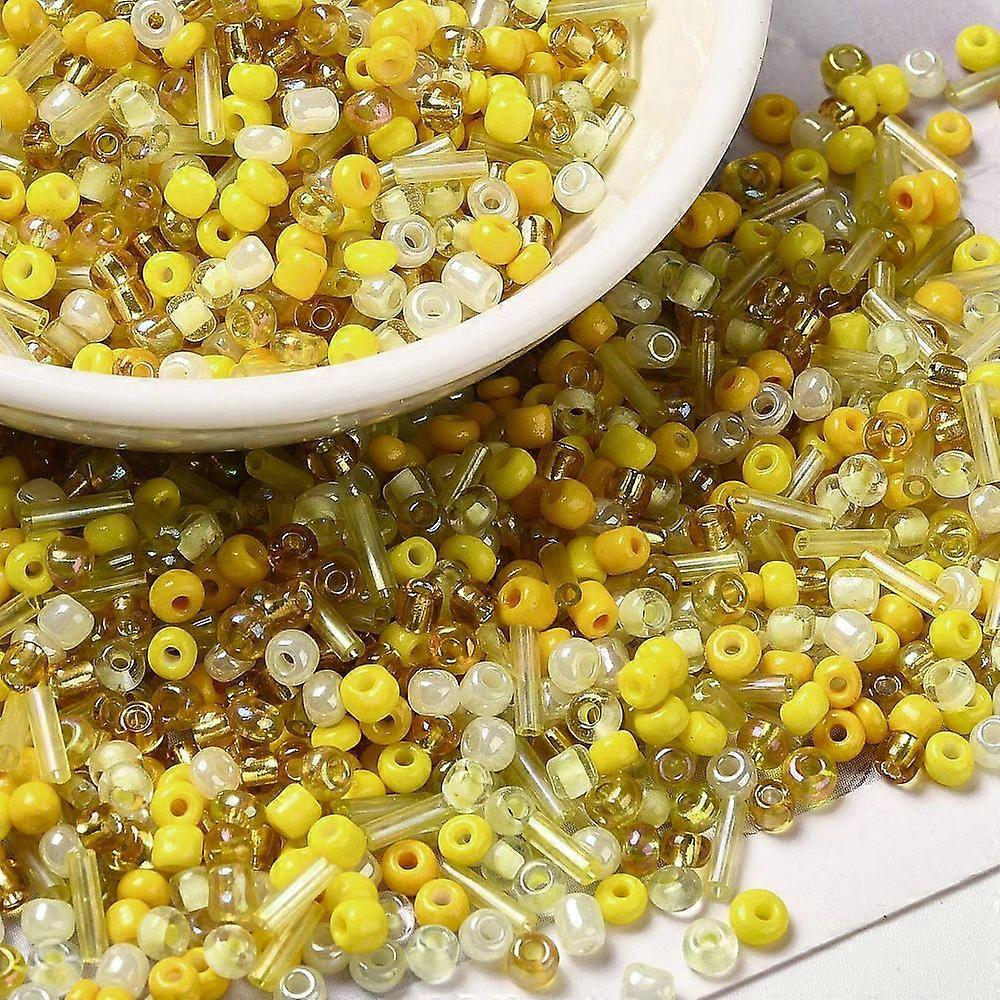 Opaque Transparent Inside Colours Glass Seed Beads Round Hole Round Tube Yellow 1.5~9x2~3x2~3mm Hole: 0.8~1mm 450g/bag