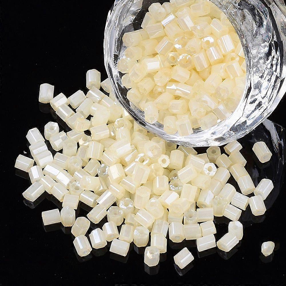 Size: 2.5~3x2.5mm/0.10~0.12x0.10inch Hole: 0.9mm/0.04inch 15000pcs/bag Material: Glass Color: Lemon Chiffon Usage: Beads Package Size: 1 Bag per package
