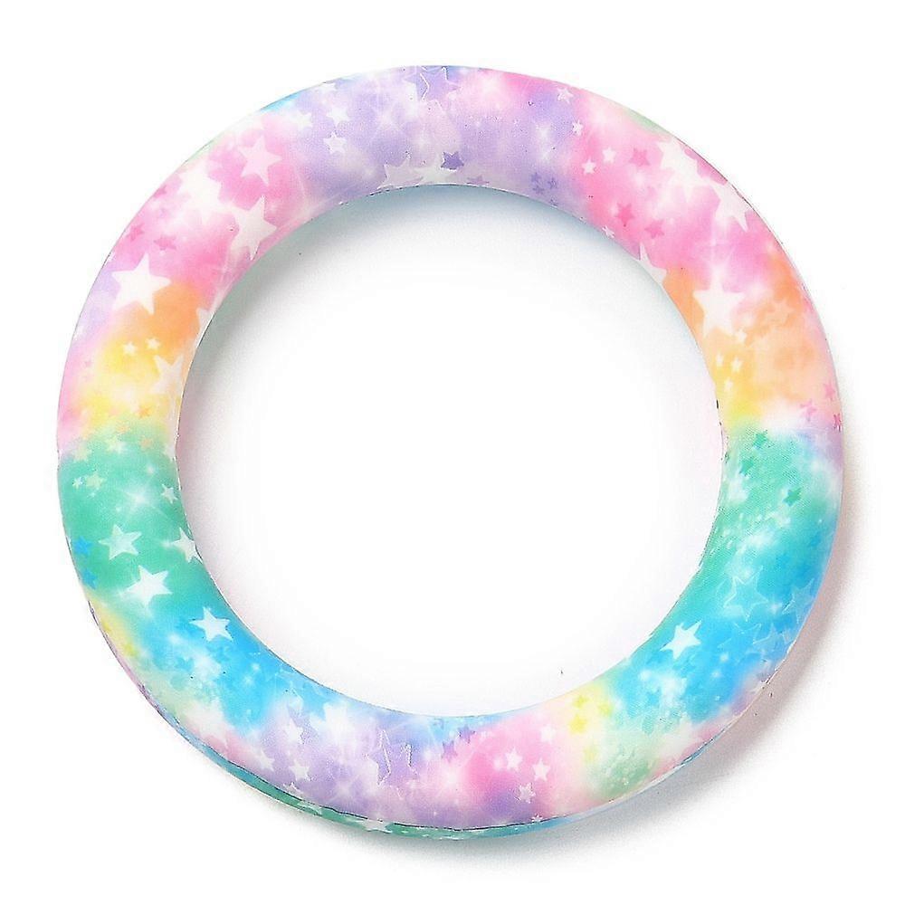 Food Grade Eco-Friendly Silicone Pendants Ring with Star Pattern Colorful 65x10mm Hole: 4mm