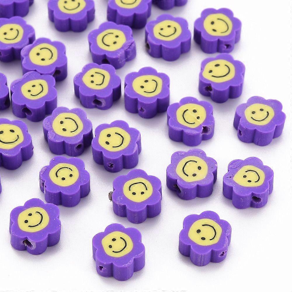 Handmade Polymer Clay Beads Flower with Face Blue Violet 9~10x8~9x4~5mm Hole: 1.4~1.6mm