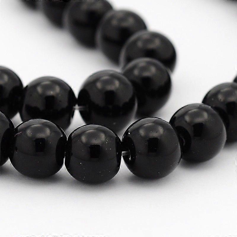Black Opaque Glass Round Beads Strands 8mm Hole: 1mm 40pcs/strand 11~12 inch