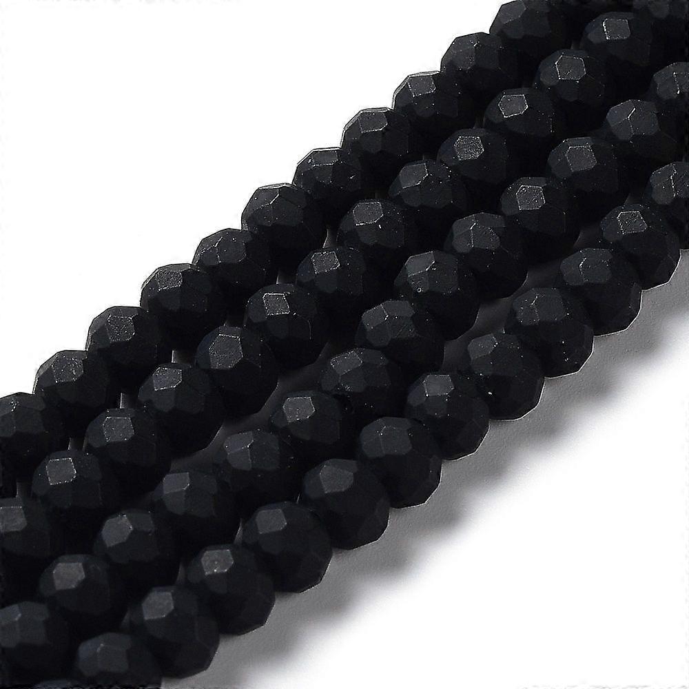 Glass Beads Strands Faceted Frosted Rondelle Black 3.5~3.8mm Hole: 1mm 105~110pcs/strand 29~31cm
