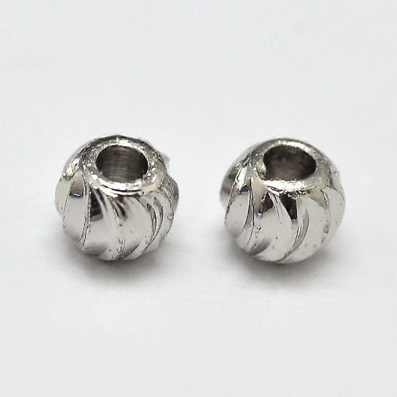 PVD Vacuum Plating Brass Corrugated Round Spacer Beads Platinum 3x2mm Hole: 1mm