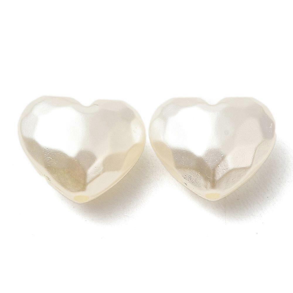 Plastic Imitation Pearl Beads Heart Faceted White 16x19.5x11mm Hole: 2mm