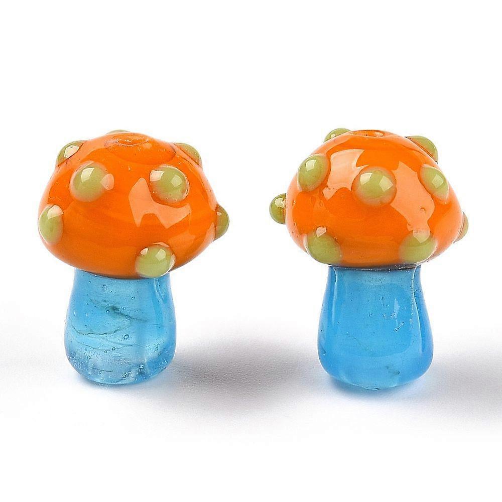 Handmade Lampwork Beads Strands Mushroom Dark Orange 15~16.5x11.5~13mm Hole: 2mm 20pcs/strand 12.60~12.99 inch (32~33cm)