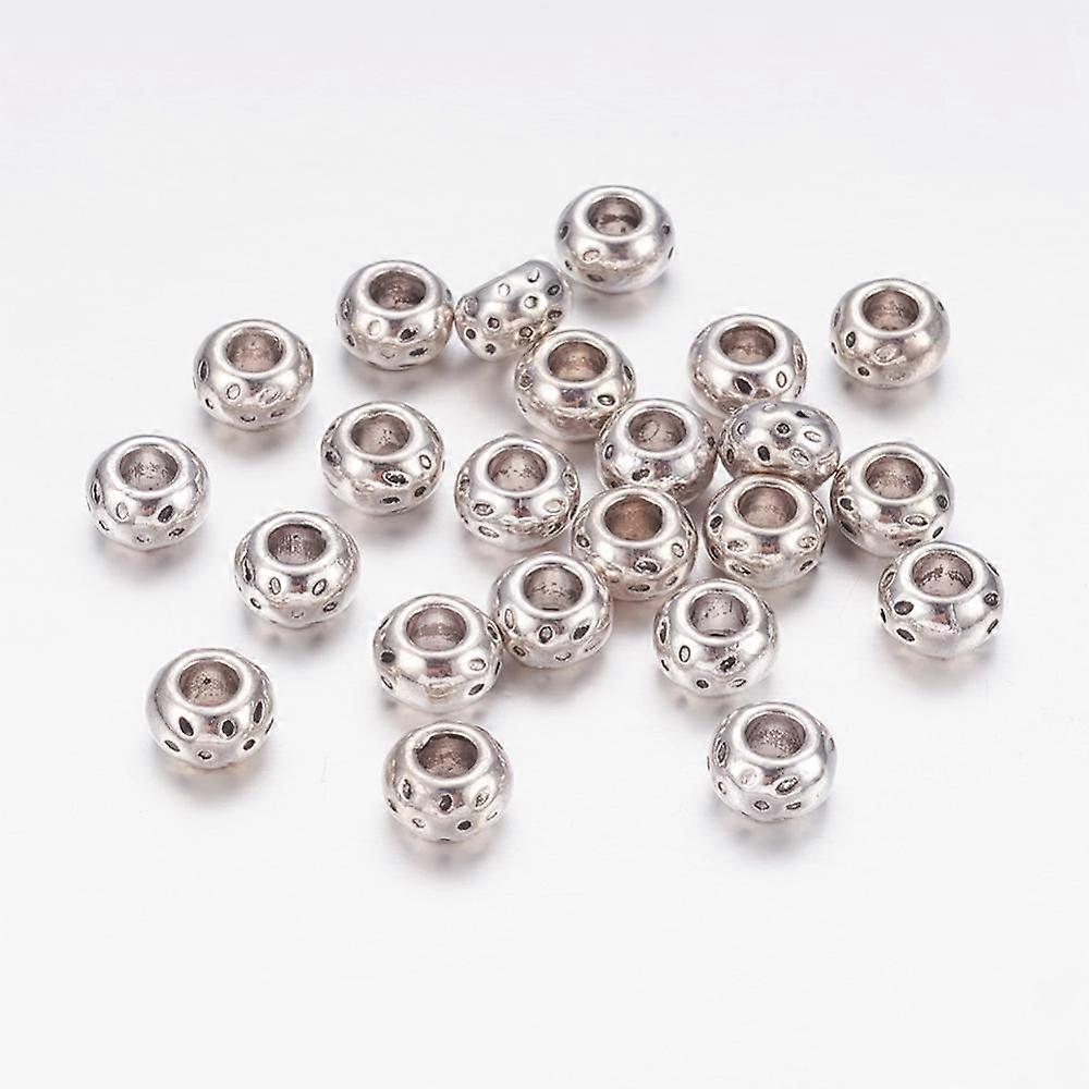 Tibetan style Alloy Beads Barrel Lead Free Cadmium Free and Nickel Free Barrel Silver 5mm long 8mm wide hole: 3.5mm