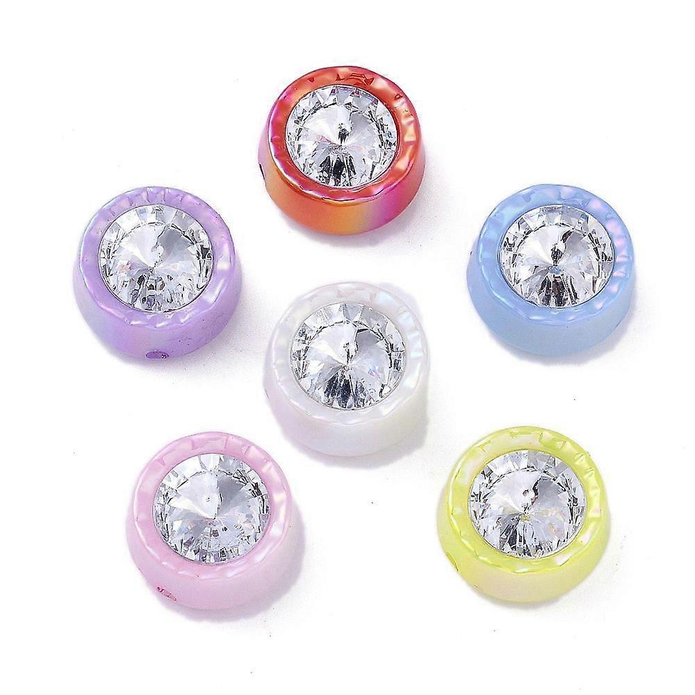 Iridescent Acrylic with Rhinestone Beads Flat Round Mixed color 20.5x20.5x12.5mm Hole: 2.5mm
