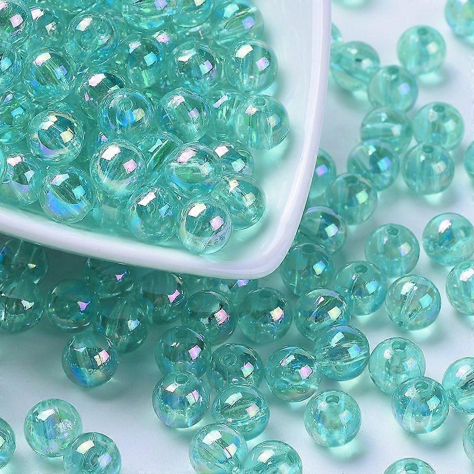 Eco-Friendly Transparent Acrylic Beads Round AB color Medium Turquoise 8mm Hole: 1.5mm