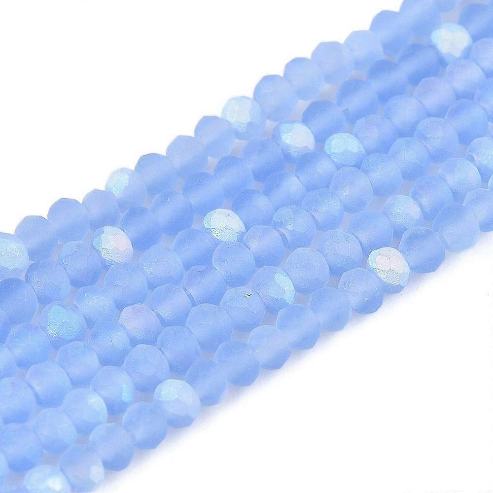 Transparent Glass Beads Strands Faceted Frosted Half AB color Plated Rondelle Cornflower Blue 2.3~2.7x2mm Hole: 0.4mm 135~140pcs/strand 26~27cm