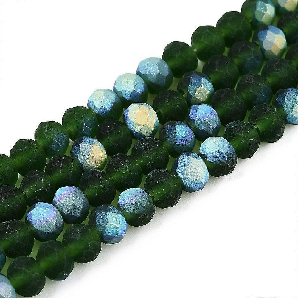Transparent Glass Beads Strands Faceted Frosted Half AB color Plated Rondelle Dark Green 6x4.5mm Hole: 1.4mm 80~85pcs/strand 38~40cm