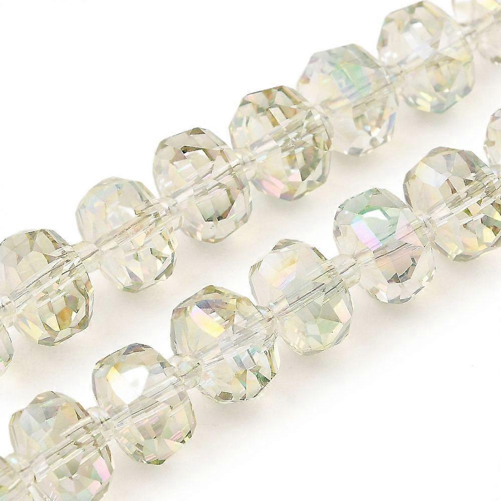 Transparent Electroplate Glass Beads Strands Pearl Luster Plated Faceted Rondelle Honeydew 9x6mm Hole: 1.2mm 60pcs/strand 19.69''(50cm)