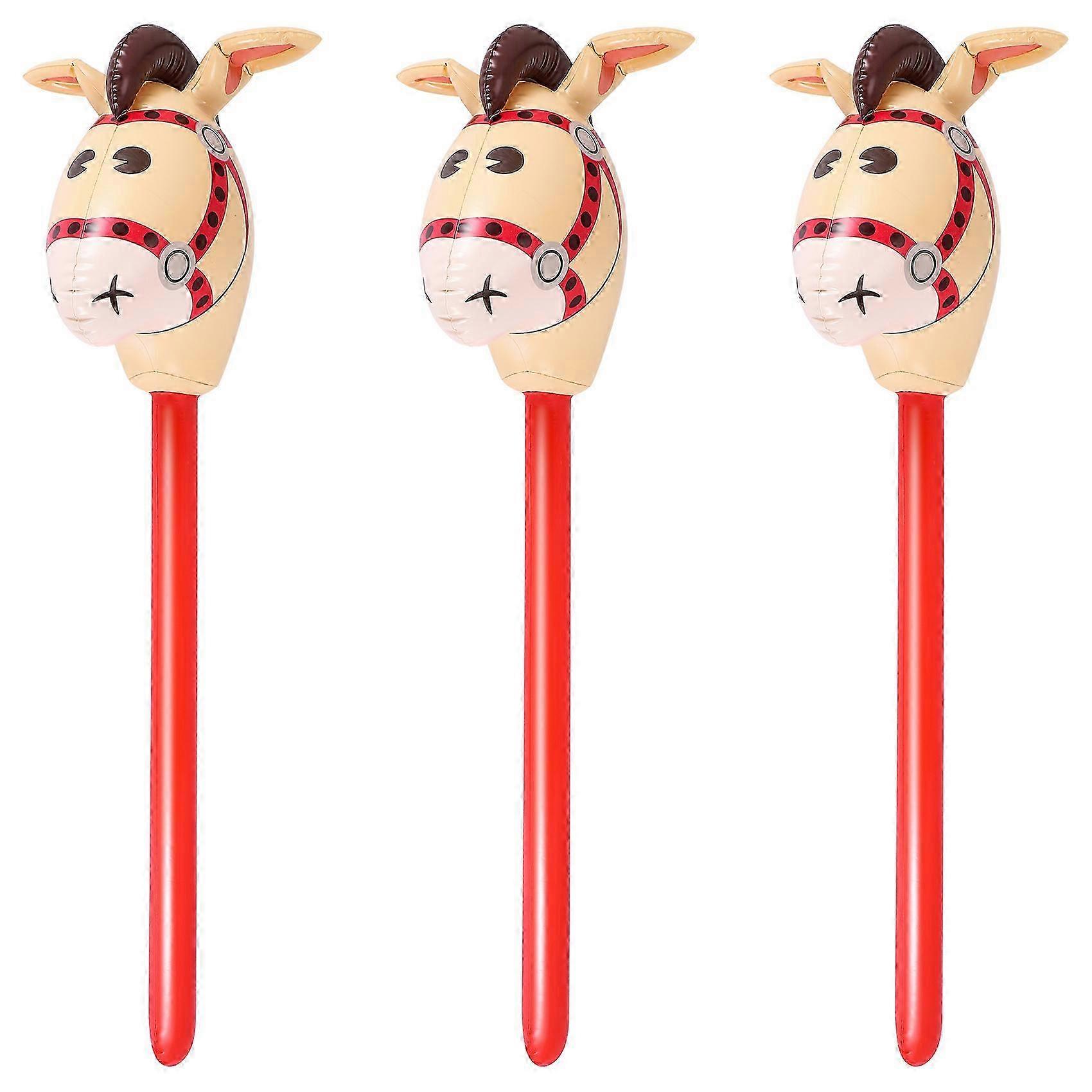 3 PCS of Inflatable Horse Heads on a Cowgirl Stick, a PVC Balloon Outdoor Educational Toy for Children and Babies.