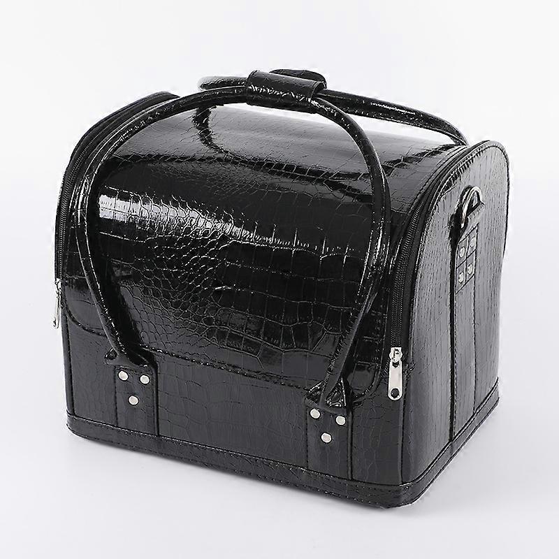 Classic Makeup Case Nail Case Makeup Storage Case with Shoulder Strap Jewellery Vanity Case Cosmetic Beauty Case Travel Organizer Professional Black