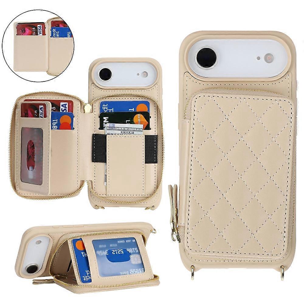 Compatible For iPhone Air Case Ring Holder Zipper Pocket Kickstand Leather Back Phone Cover with Shoulder Strap