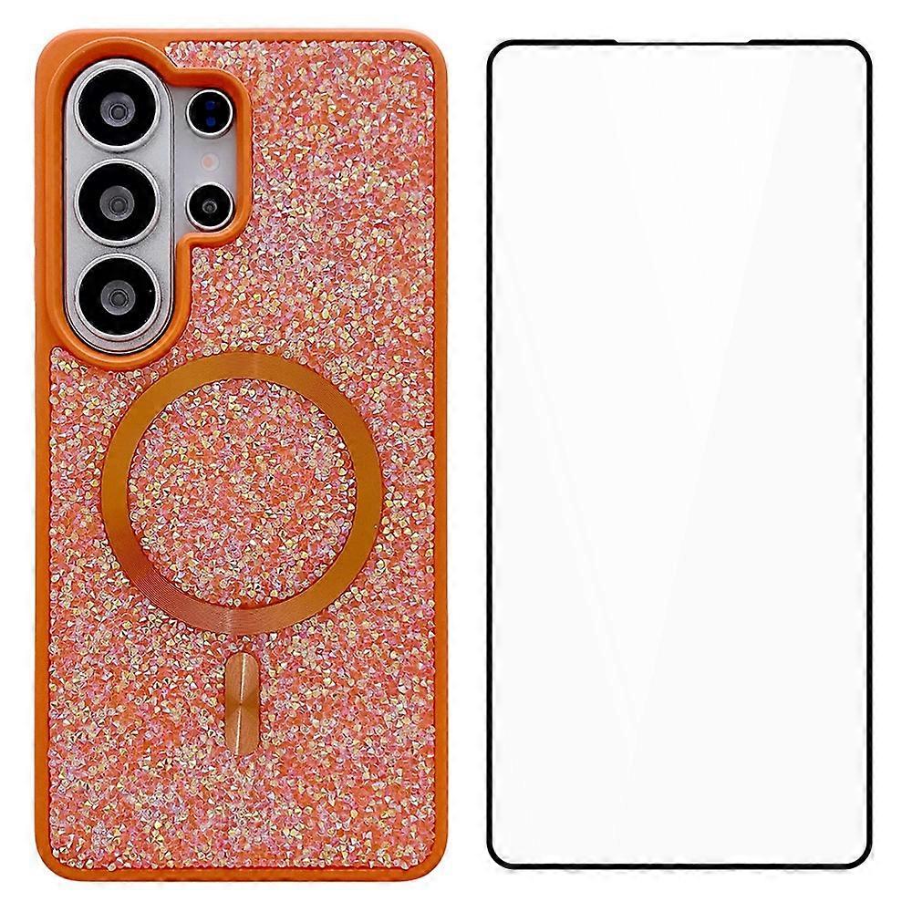 Compatible For Samsung Galaxy S26 Ultra Magenetic Case Skin-feel Rhinestone Design TPU PC Shockproof Phone Cover with Tempered Gla