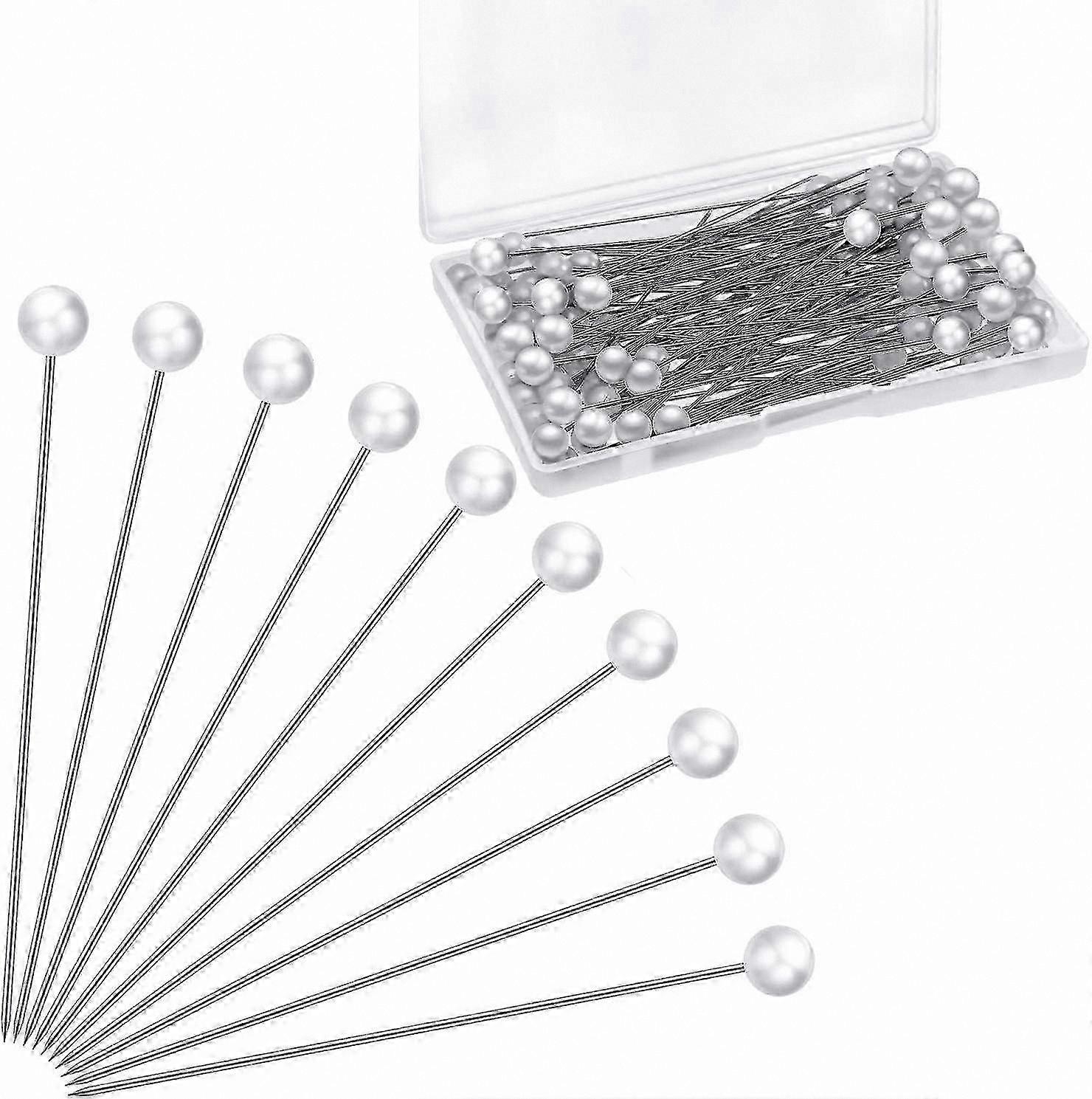 100pcs Straight Sewing Pins with Pearl Heads for Bridal Bouquets & Corsages White Craft Pins
