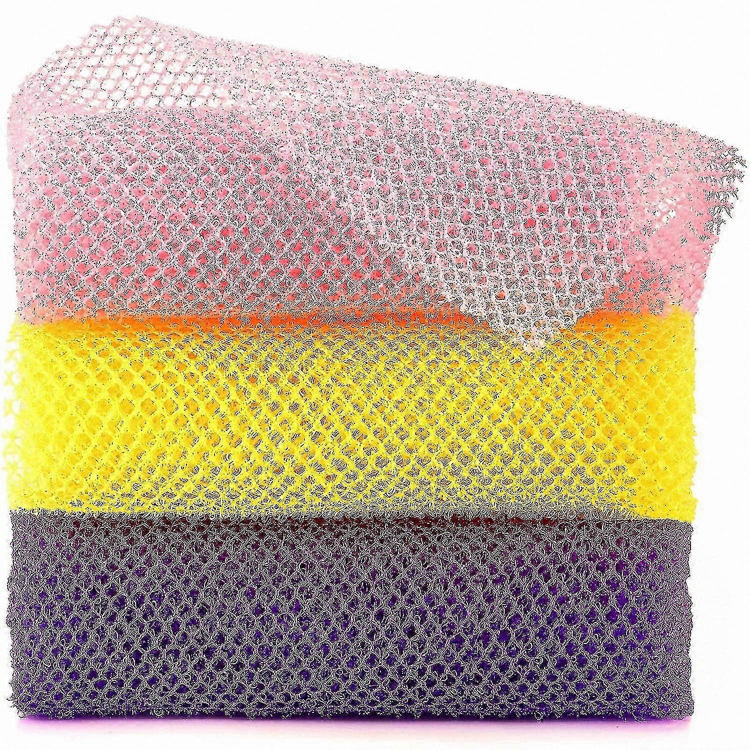 Set of 3 Exfoliating Bath Sponges for Body Scrubbing and Shower Use, Multi-Colored (Pink, Yellow, Purple)