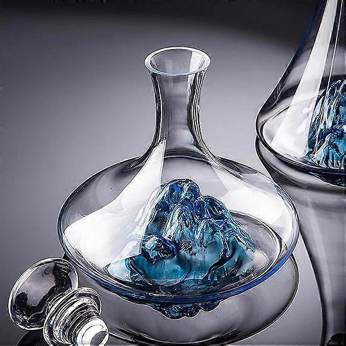 Crystal Glass Wine Decanter, Luxury Wine Carafe with Built-in Blue Iceberg Waterfall, Lead-Free Wine Aerator with Glass Stopper, Wine Accessories (Sho