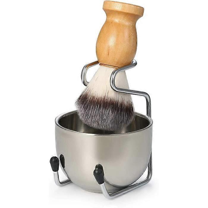 Anbbas Shaving Brush Synthetic Badger Hair Wood Handle,Stainless Steel Shaving Stand and Bowl,Perfect for Men Wet Shave
