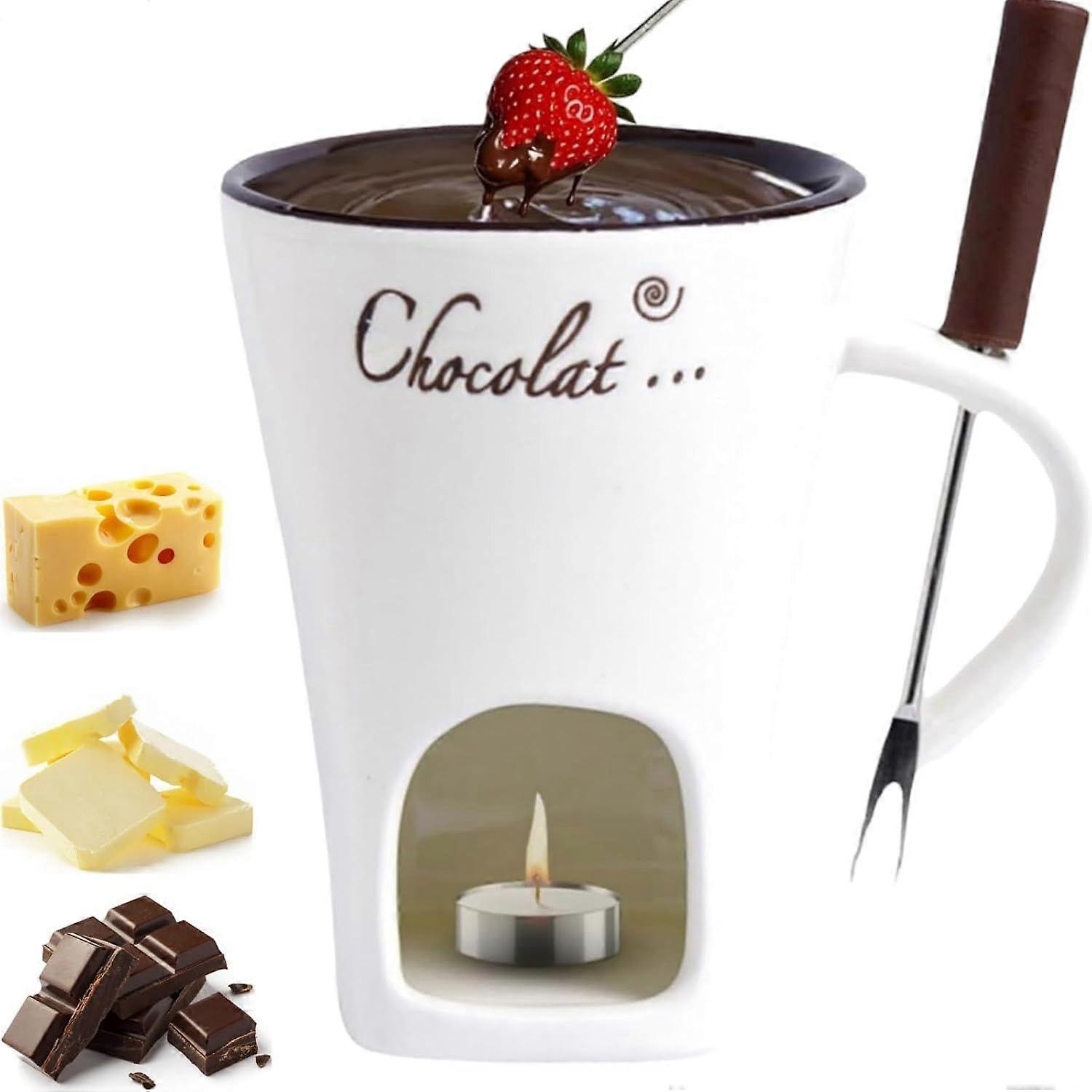 Perfect for Romantic Evenings and Special Occasions: This mini chocolate fondue set is ideal for date nights, birthdays, weddings, and more. The elegant design adds a touch of sophistication to any celebration. Each set includes a melting cup and forks, making it easy to enjoy rich, melted chocolateCompact and Convenient Design: Designed with convenience in mind, this sweet fondue cup is compact and easy to store. The fondue bliss cup fits perfectly with the forks, allowing you to indulge in your favorite chocolates effortlesslyHigh-Quality Materials and Durability: Crafted from high-quality materials, these fondue mugs are durable and built to last. The smooth finish and sturdy construction ensure they can withstand regular use while maintaining their elegance. Perfect for both casual and formal settingsVersatile and Fun: Not just for chocolate, this chocolate fondue mug can be used with a variety of dips, such as caramel or cheese, making it versatile for different occasions. The included forks add an interactive element, enhancing the enjoyment of your fondue experienceThoughtful Gift Idea: Whether you're looking for a unique gift for a loved one or a special treat for yourself, this chocolate fondue cup is a thoughtful choice. Packaged attractively, it makes a perfect present for any occasion, bringing joy and indulgence to every moment