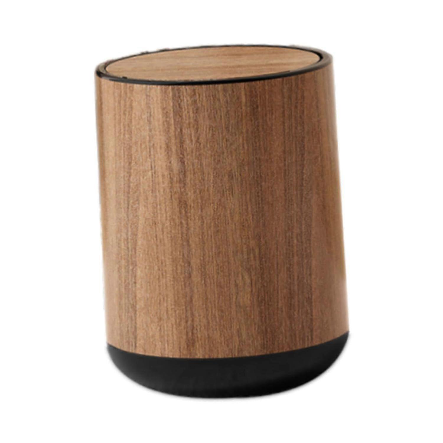 8L/2.1GAL Modern Metal Waste Bin with Realistic Wood Texture,Built-in Bag Holder,Open-Top Trash Bin for Bathroom,Home,Office,Living Room (2.1gal Round