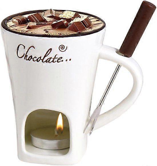 Fondue Cup - Personal Melting Pot with Fork Set for Easy Dipping | Reliable Ceramic with Non-Stick, Perfect for Cheese Chocolate Candy Caramel Seafood