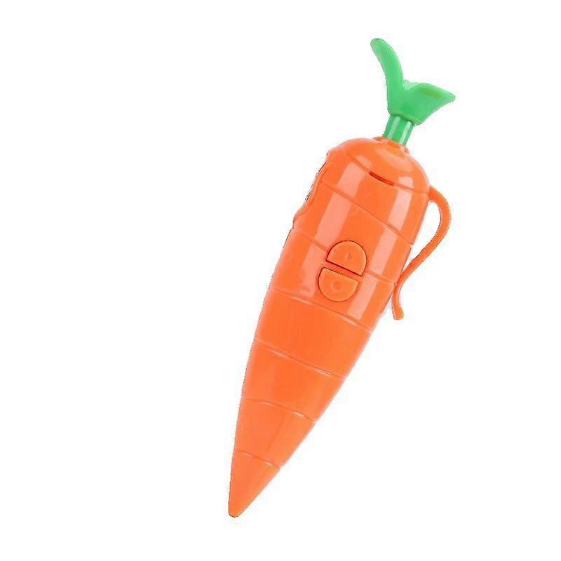 A novel carrot-shaped, press-activated voice recorder, battery-powered, suitable for party games.