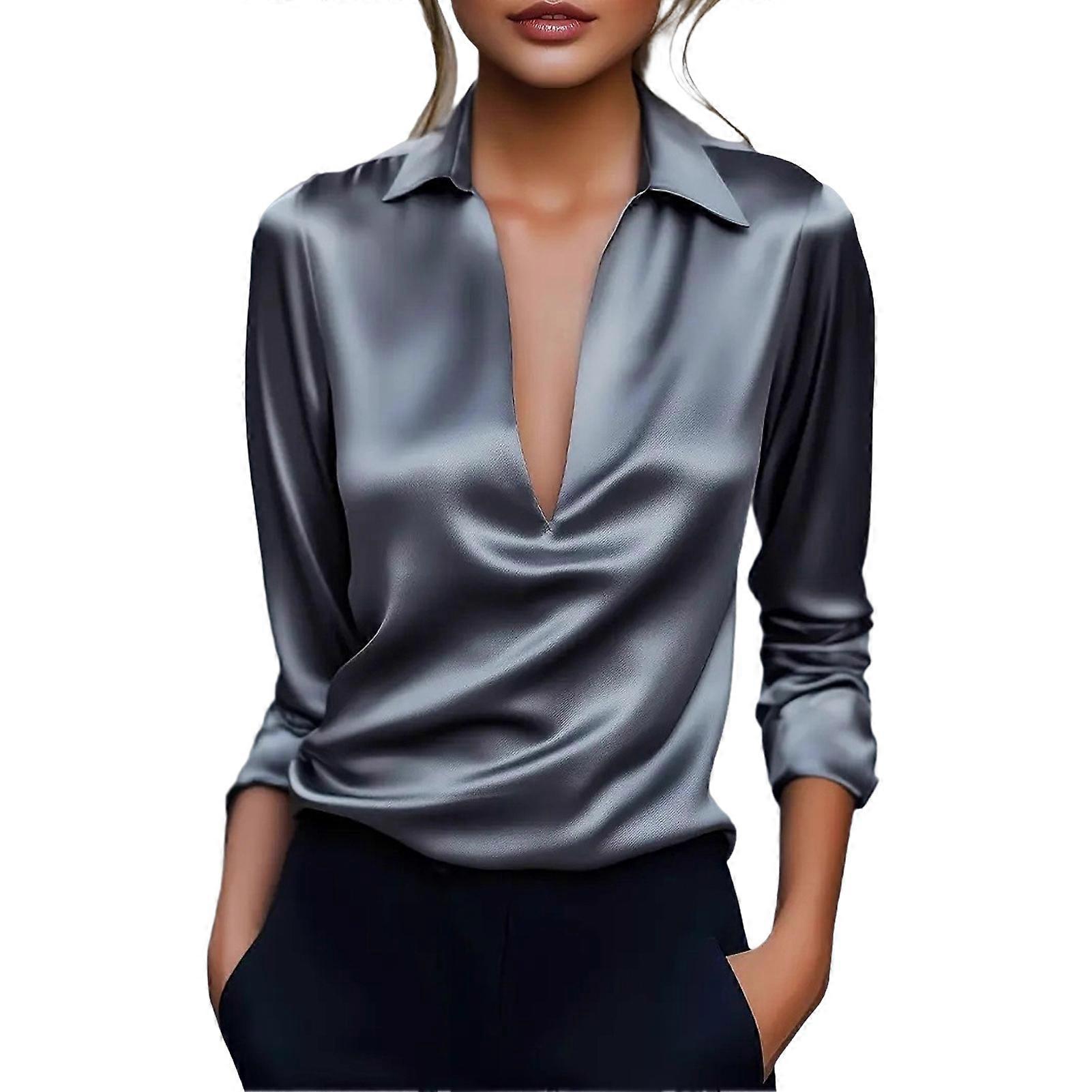 Elegant V-neckline flatters facial contours and neckline: The clean, minimalist V-neck design creates a vertical visual extension, gently softening rounded facial features while showcasing graceful collarbones. The perfectly balanced neckline depth strikes a harmonious balance between sophistication and lightness, leaving ample room for layering under fall jackets-a key detail that elevates personal style. Premium drape fabric for understated luxury: Crafted from polyester fabric, this shirt boasts natural drape and a soft sheen. Its delicate, skin-friendly texture is wrinkle-resistant and easy to care for. Even worn alone, the fabric's inherent texture and silhouette effortlessly convey a minimalist, sophisticated elegance—quietly luxurious. A structured yet comfortable fit: Precision shoulder lines and a subtly cinched waist offer flattering coverage without the stiffness or bulk of traditional shirts. Whether paired with pants or skirts, it creates a sharp yet soft autumn workwear look, uniting comfort and style. Its solid-color versatility unlocks endless styling possibilities: Classic neutral colors (white, apricot, gray, blue) make it an indispensable foundation piece for fall wardrobes. Wear it solo as a focal point or layer it under blazers, trench coats, or knit cardigans. Effortlessly transition between work commutes and casual dates-a highly cost-effective, multi-functional piece. Refined craftsmanship reveals artistry in simplicity: Attention to detail ensures quality, from delicate hem finishing and sturdy buttons to precise stitching. The clean, structured V-neck and cuffs designed for easy rolling up create a relaxed style. These subtle yet thoughtful details collectively uphold the shirt's enduring quality and timeless elegance. Description: This Women’s Shirt features a three-dimensional tailored fit that combines comfort with a sleek, neat style. Designed with precise shoulder lines and a slightly tapered waist, it flatters the figure while avoiding the stiffness of traditional shirts. Crafted from polyester fiber fabric, it offers a natural drape, soft luster, and skin-friendly touch that is wrinkle-resistant and easy to care for. The elegant V-neck design elongates the neckline and highlights the collarbone, balancing sophistication with casual ease. Available in classic solid colors like white, apricot, gray, and blue, this versatile shirt suits both professional and casual occasions. Thoughtful details such as durable buttons, smooth stitching, and roll-up cuffs enhance its quality and timeless appeal. Perfect for autumn commuting or layering under jackets, it effortlessly blends style and practicality. Item Name: Women Shirt Material: Polyester Fiber Style: Commuting Gender: Women Size Type: Regular Neck Type: V-neck Collar Type: Lapel Sleeve Length: Long Sleeve Length: Regular Features: Loose Fit, Solid Color, Smooth Texture Size Details: Size: S, Bust: 96cm/37.8", Clothes Length: 63cm/24.8" (Approx.) Size: M, Bust: 100cm/39.37", Clothes Length: 64cm/25.2" (Approx.) Size: L, Bust: 106cm/41.73", Clothes Length: 65cm/25.59" (Approx.) Size: XL, Bust: 112cm/44.09", Clothes Length: 66cm/25.98" (Approx.) Size: 2XL, Bust: 118cm/46.46", Clothes Length: 67cm/26.38" (Approx.) Notes: Please refer to our size chart and choose the right size. Due to the light and screen setting difference, the item's color may be slightly different from the pictures. Package Includes: 1 x Women Shirt