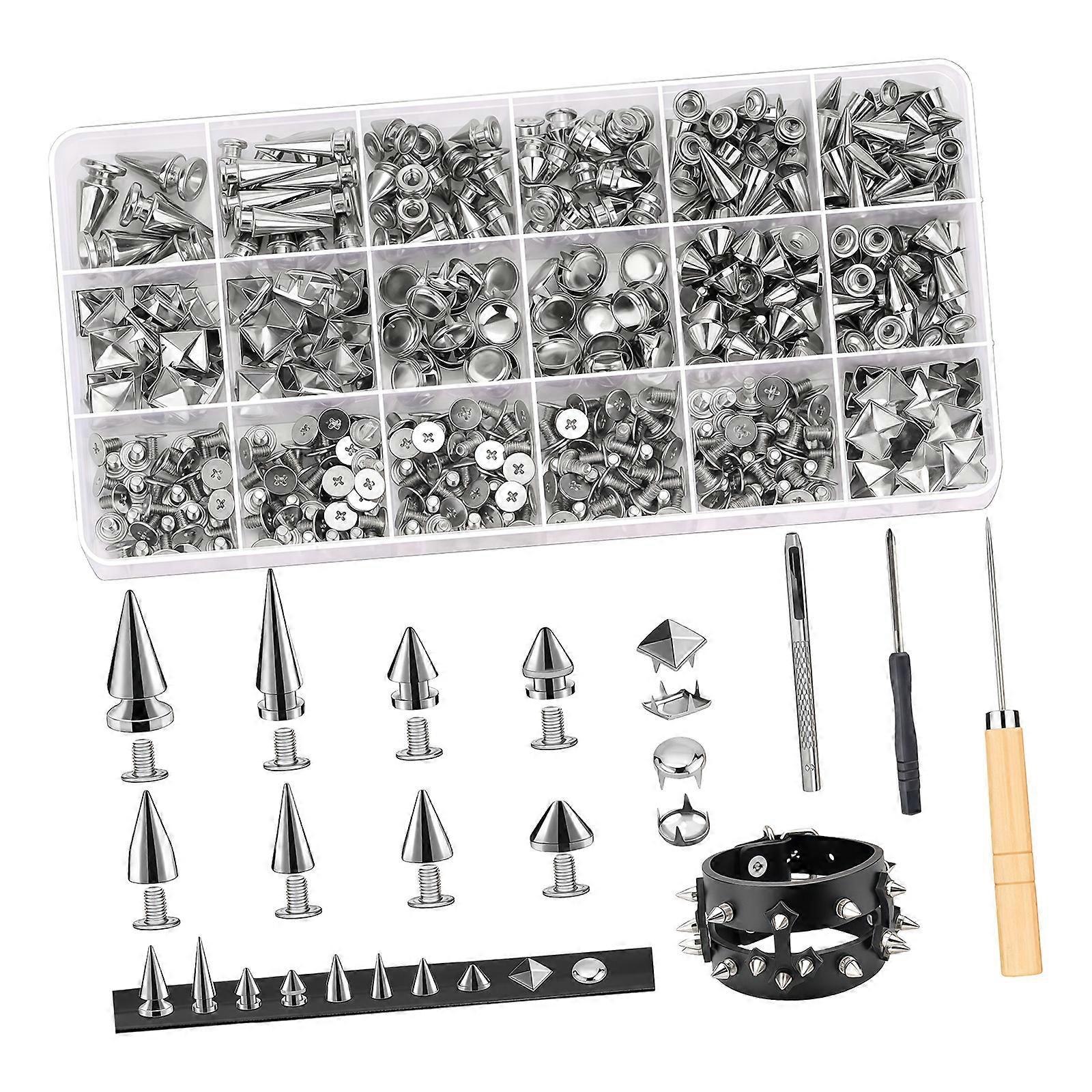 Pack of 455 Professional Rivets Installation Set with Alloy Rivets 10 Size and Tool for Leather and Fabric silver
