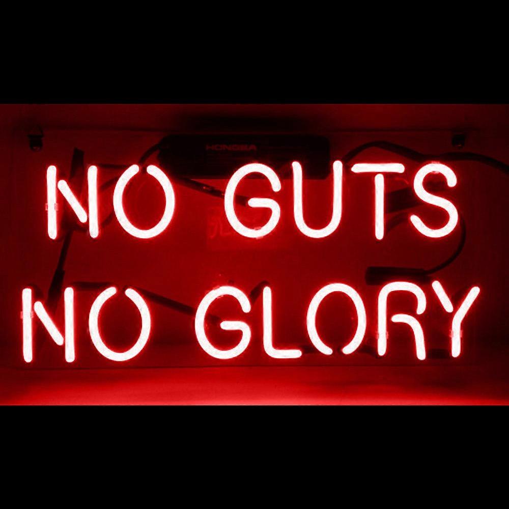 NO GUTS NO GLORY Neon Sign - 14"x7" Handmade Real Glass Tube Wall Art, Bold Motivational Light for Gym, Office & Game Room