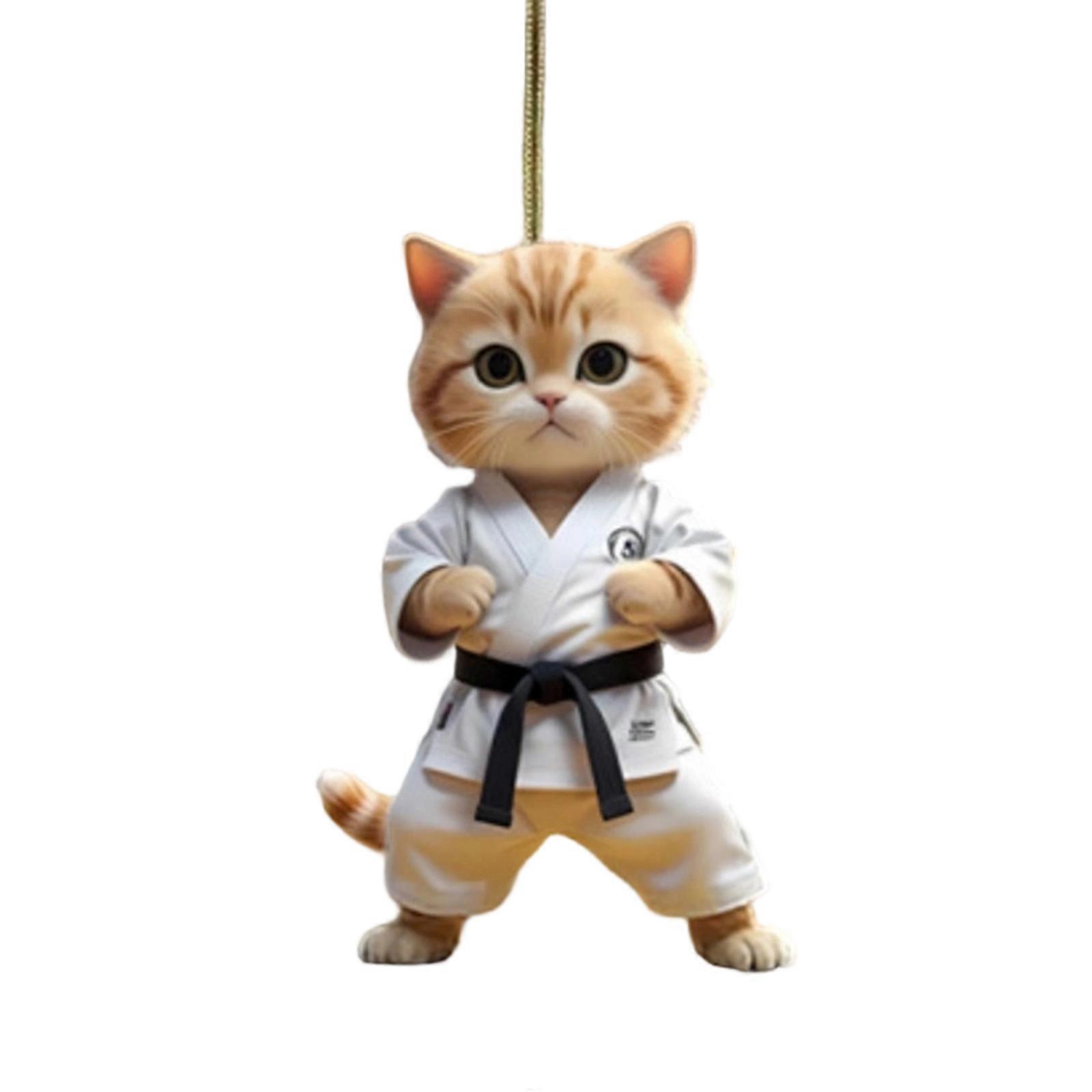 Acrylic Taekwondo Feline Car Mirror Charm Double Sided Viewable Imaging with Frosted and Smooth Finishes for Easy Hanging Decoration Multicolor