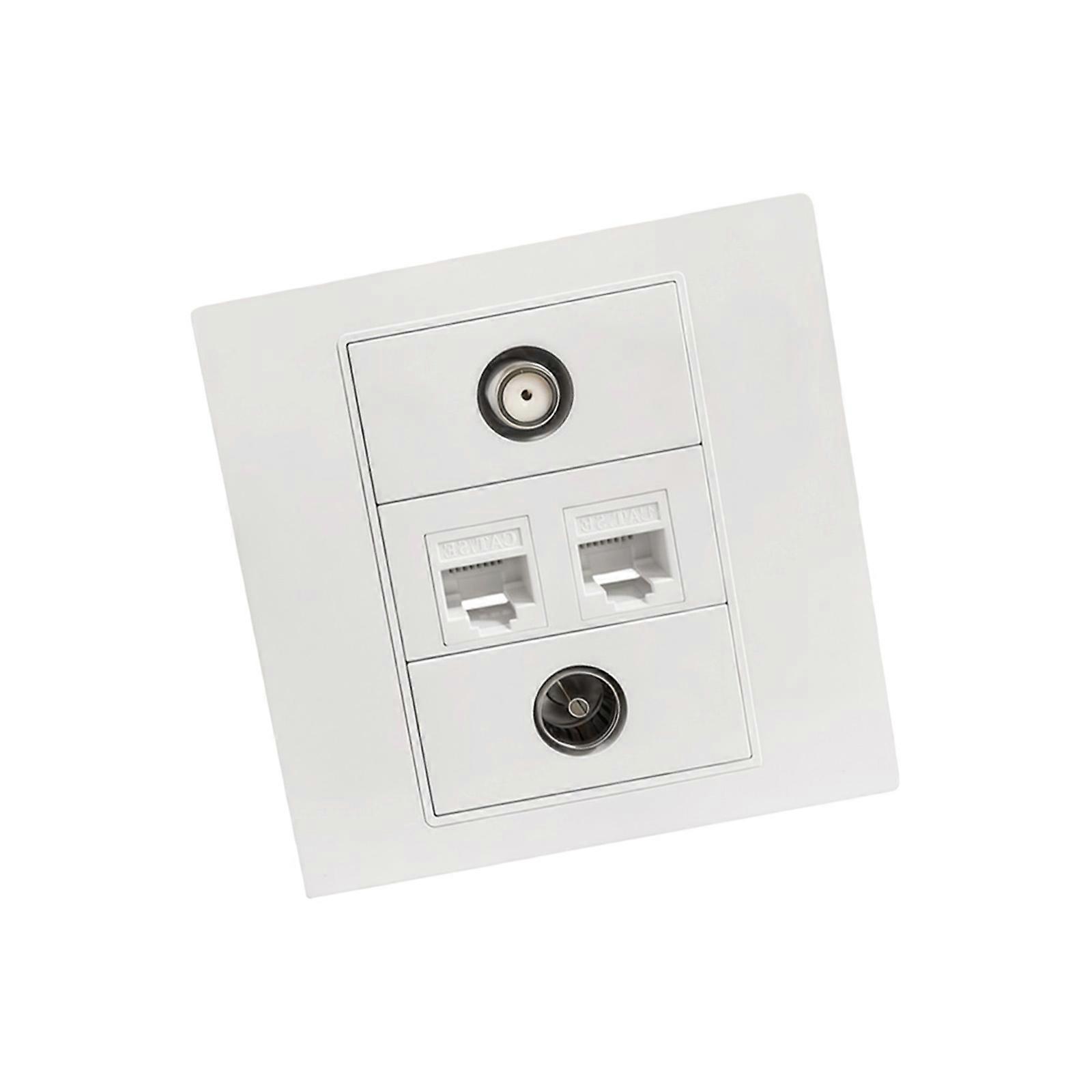 4Port Direct Plugs Multimedia Panel TV9.5 RJ45 F Connectors Wall Plate Easy Installation 86x86mm Solderless Setup Multicolor