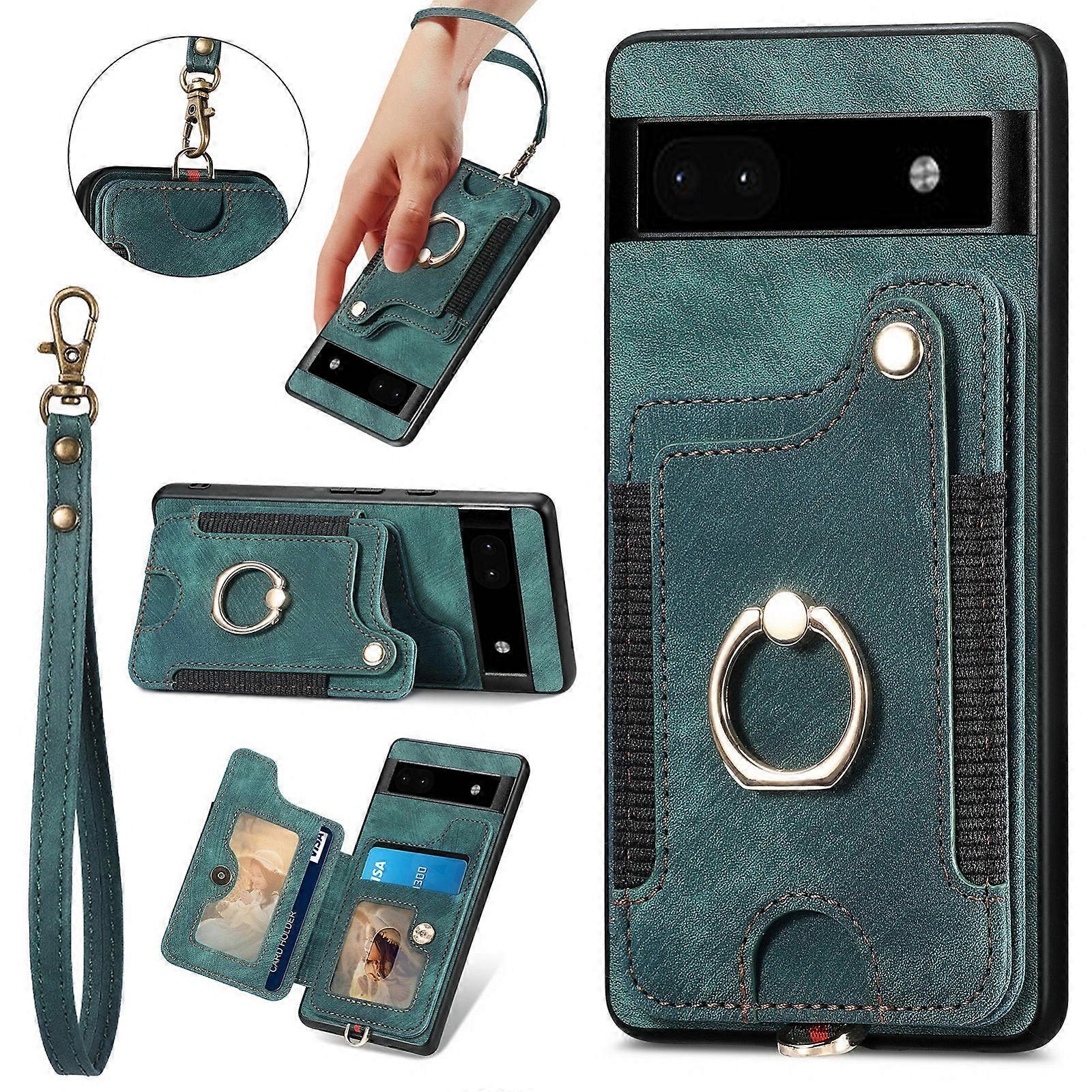 Retro Skin-feel Ring Multi-card RFID Wallet Phone Case with Lanyard