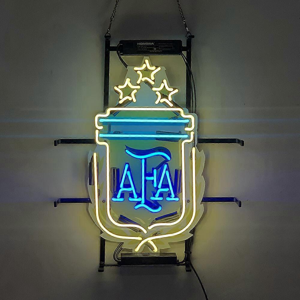 Inspired by Argentina Football Neon Sign - 17"x14" Handmade Real Glass Tube Wall Art, Sky Blue & White Stripes Light for Fan Cave & Game Room