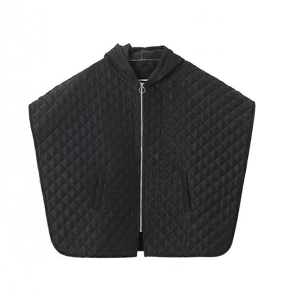 Modern Black Hooded Cape, Women's Stylish Zip Front Cloak for Winter
