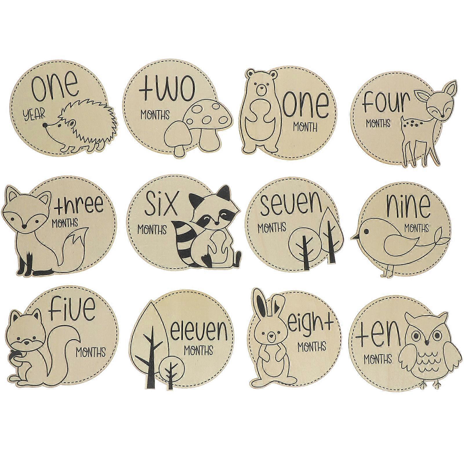 Growth Cards Wooden Baby Signs for Decoration 12Pcs