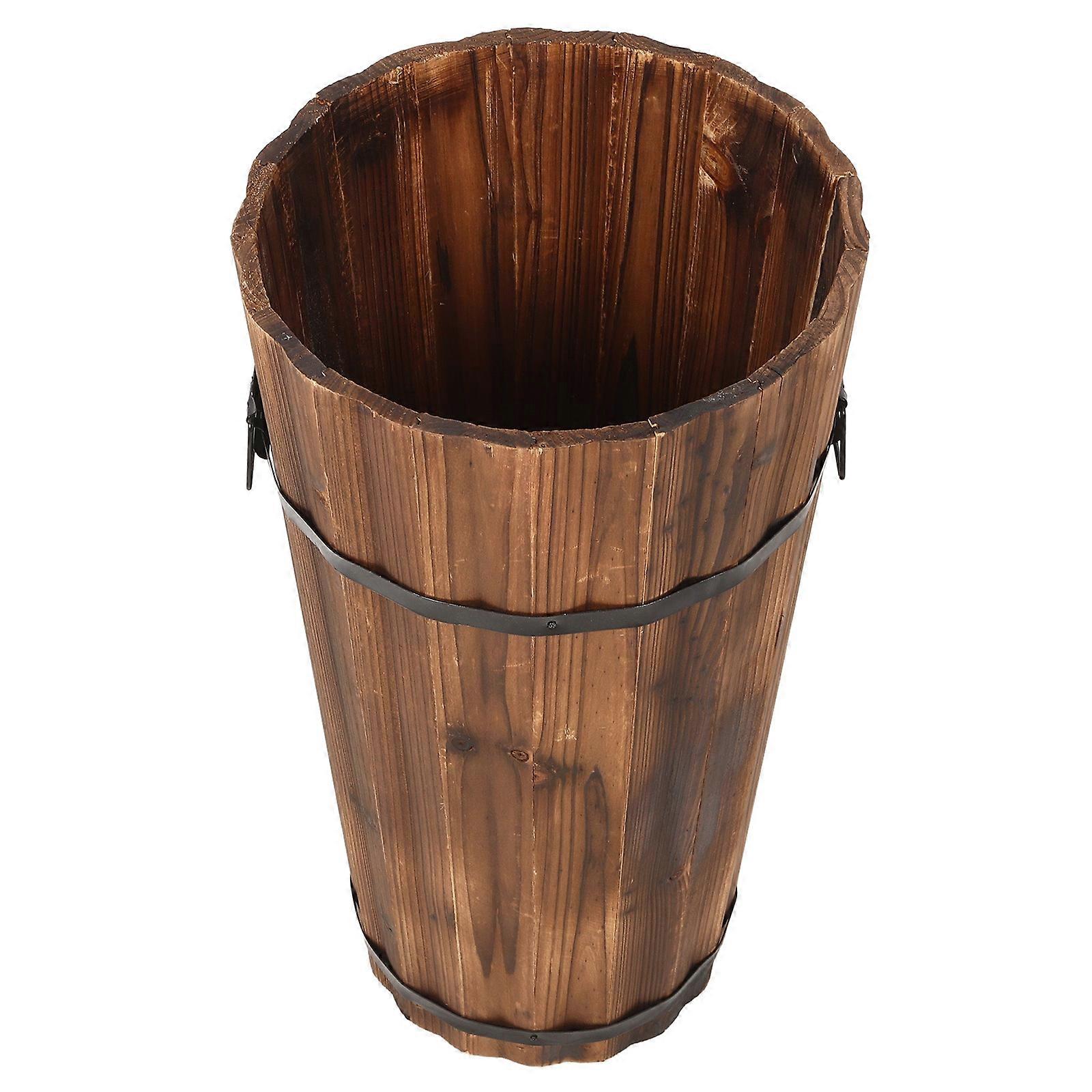 Light Brown Wood Umbrella Holder for Storage Use Sturdy and Perfect for Entrance or