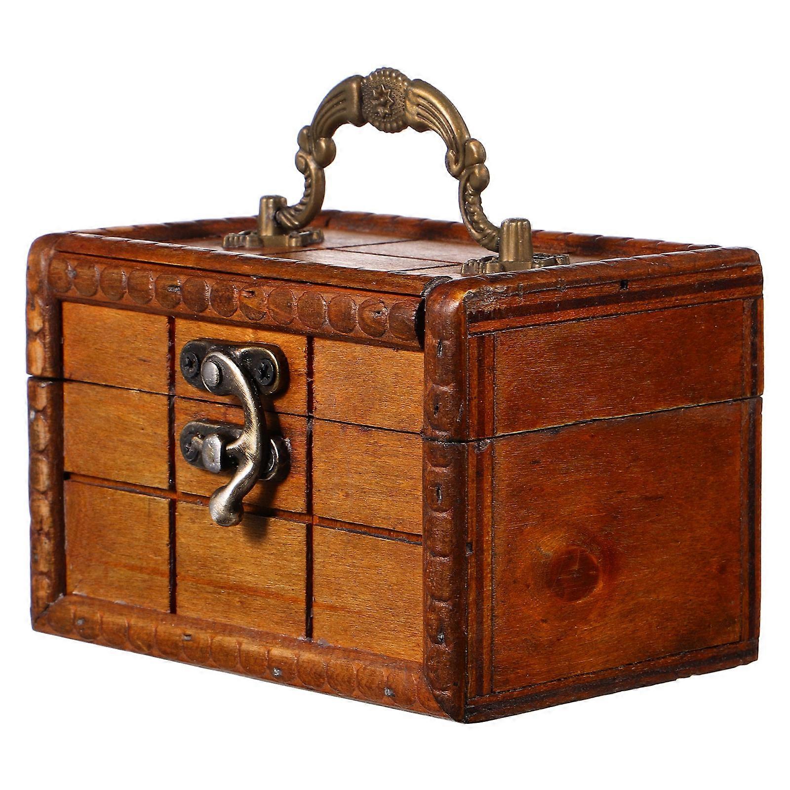 Treasure Chest Box Decorative Wooden Box Household Travel Square Shape 1Pack